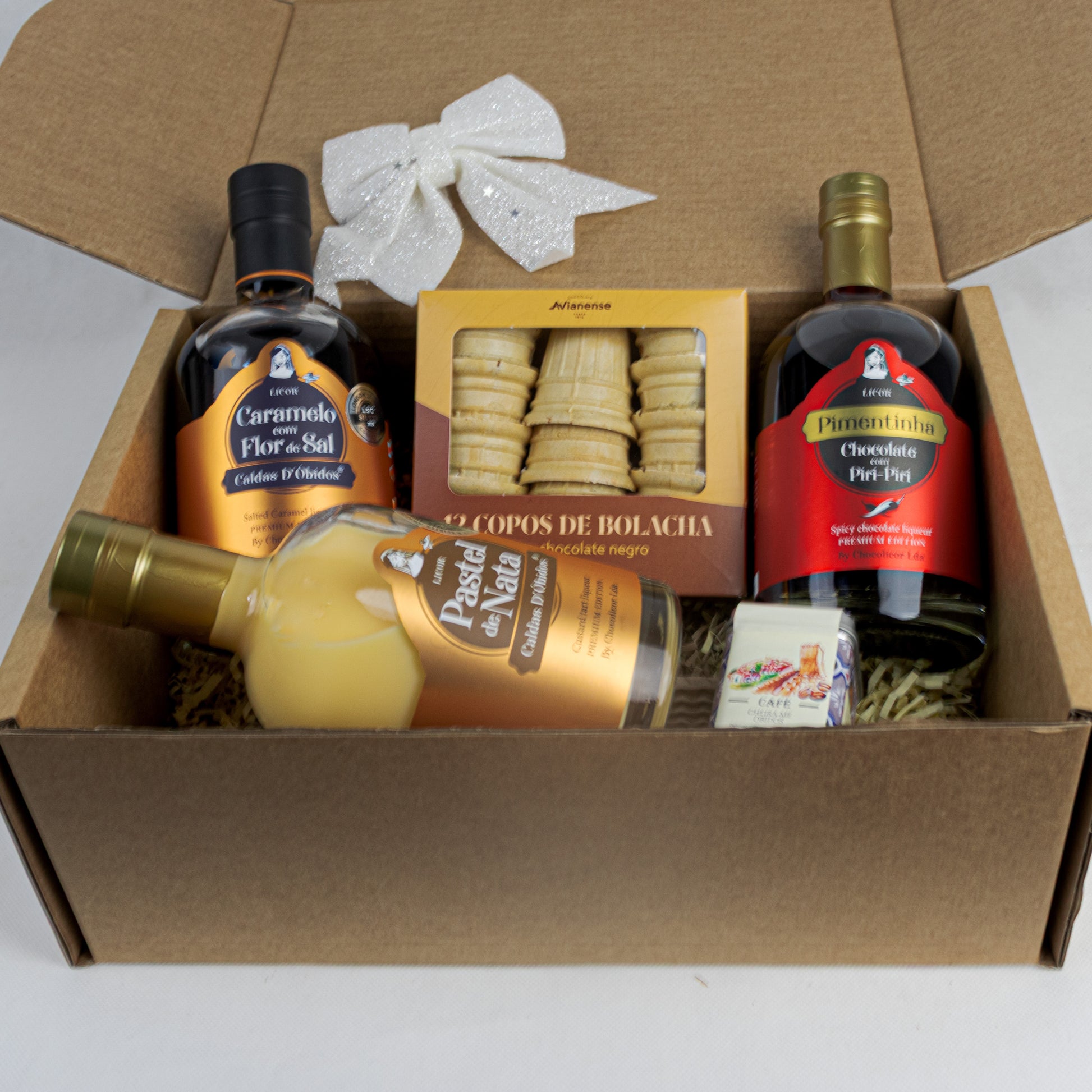 - Pack 1: Licor de Caramelo com Flor de Sal, Licor de Chocolate com Piri-Piri e Licor de Pastel de Nata.